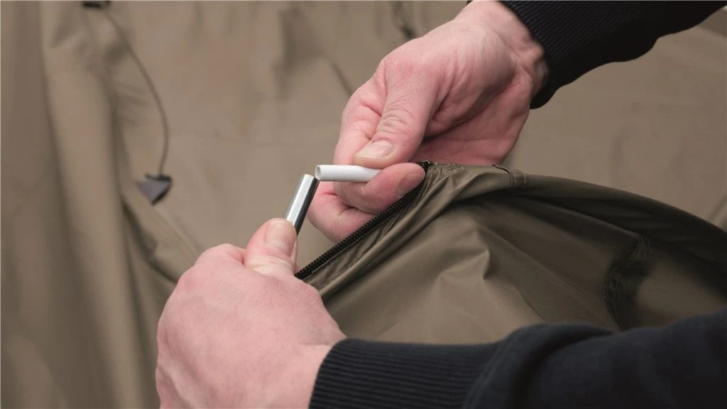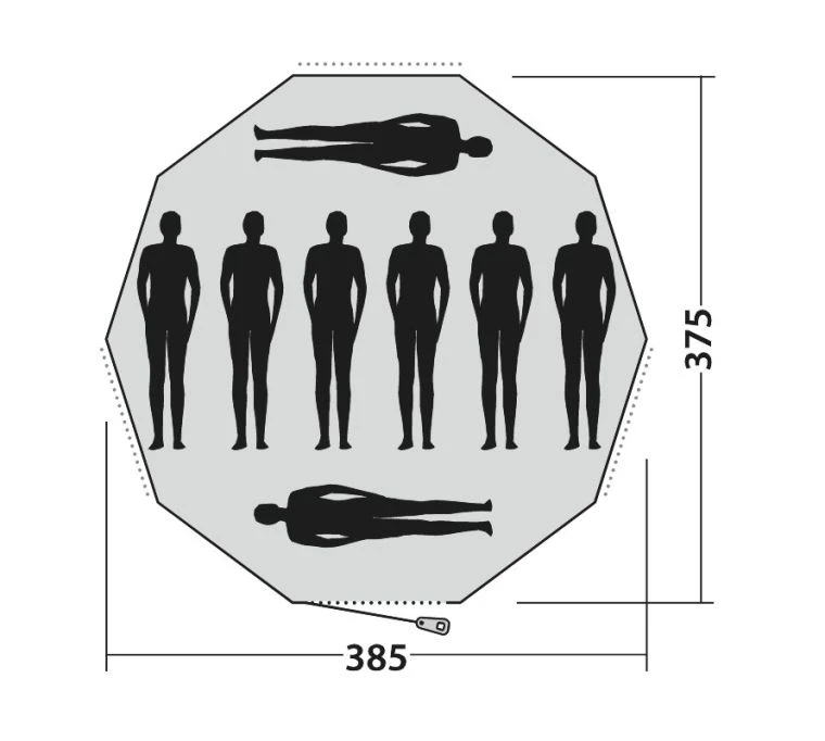 Easy access is guaranteed through the fold-flat entrance with double slider zippers on the door for flexible opening and a full mesh door behind. Mesh vent under the apex hood, with a plastic ring to hold its shape, and low covered vents ensure ample ventilation and easily adjustable fresh airflow.